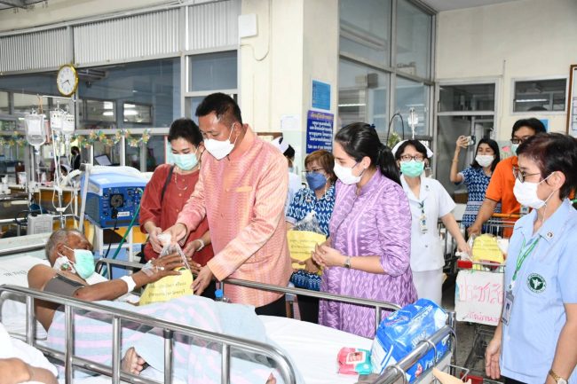 นายธวัชชัย ศรีทอง ผู้ว่าราชการจังหวัดชลบุรี กล่าว่า วันนี้ตนเองพร้อมนายกเหล่ากาชาด ลงพื้นที่ โรงพยาบาลชลบุรี เพื่อนำของขวัญ มามอบให้เจ้าหน้าที่และผู้ป่วยที่ไม่สามารถกลับไปฉลองเทศกาลปีใหม่กับครอบครัวตามภูมิลำเนาได้ เนื่องจากผู้ป่วยส่วนใหญ่ ต้องอยู่ในความดูแลของแพทย์ยังต้องนอนพักรักษาตัวตามเตียงผู้ป่วยในหอผู้ป่วย เพื่อเป็นขวัญกำลังใจ และเพื่อไม่ให้ผู้ป่วยรู้สึกโดดเดี่ยวในวันสำคัญของไทย มีแรงใจที่เข้มแข็งในการต่อสู้กับโรคภัยต่อไปและตรวจเยี่ยมและให้กำลังใจทีมแพทย์ พยาบาล เจ้าหน้าที่และบุคลากรที่ปฏิบัติหน้าที่ ที่โรงพยาบาลชลบุรี พร้อมมอบกระเช้าของขวัญ และขนม เพื่อเป็นขวัญและกำลังใจในการทำงาน ซึ่งเจ้าหน้าที่ แพทย์ พายาบาลเป็นบุคลที่เสียสละต้องสละเวลาส่วนตัวเพื่อปฎิบัติหน้าที่ไม่สามารถกลับไปฉลองเทศกาลปีใหม่กับครอบครัวได้