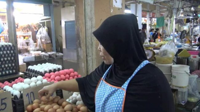 นางกัลยา สุระคำแหง แม่ค้าขายไข่ในตลาดทรัพย์สินพลาซ่า บอกว่า วันนี้ไข่ไก่ราคาแพงมาก ราคาขึ้นมา 20 สตางค์ต่อฟอง ตอนนี้เบอร์ 0 ราคาฟองละ 5 บาท เบอร์ 1 ราคาฟองละ 4.70 บาทเบอร์ 2 ราคาฟองละ 4.50 บาทและเบอร์ 3 ราคาฟองละ 4.30 บาท