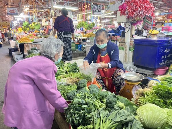 โดยชุนฉ่ายหรือผักโขม ตอนนี้อยู่ที่ราคากิโลกรัมละ 50 บาท , ต้นกระเทียม ราคาขีดละ 15 บาท ถ้าขายครึ่งกิโลกรัมจะคิดแค่ 70 บาท ส่วนผักอื่นๆ ก็จะขายขีดละ 10-15 บาทเท่านั้น ราคาไม่แพง และไม่ขาดตลาด ยังมีเพียงพอไว้จำหน่ายให้ลูกค้า ซึ่งคาดว่า สาเหตุที่ทำให้ราคาผักถูกลงอย่างมากในขณะนี้ น่าจะมาจากวงจรการผลิต ที่เกษตรกรสามารถกลับมาเพาะปลูกได้ตามปกติแล้ว หลังจากหลายพื้นที่ประสบปัญหาน้ำท่วมในช่วงฤดูฝนในปีที่ผ่านมา และเมื่อเข้าสู่ฤดูหนาว ผักจะโตง่าย ปลูกง่าย ปริมาณผักจึงมีเพียงพอรองรับความต้องการของลูกค้า แต่ในวันพรุ่งนี้ ลูกค้าจะมาซื้อผักกันเป็นจำนวนมากเพื่อนำไปประกอบอาหารไหว้เจ้าและเฉลิมฉลองเทศกาลฯ ก็ต้องดูอีกทีว่า จะมีผักชนิดใดขาดตลาดหรือไม่ ถ้าหากขาดตลาดอีก ก็อาจจะมีการปรับราคาขึ้นตามกลไกตลาด .