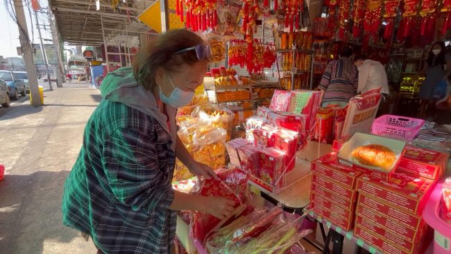 “ปีนี้ถ้าเทียบกับปีก่อนถือว่าคึกคักขึ้นนิดหน่อย ช่วง 2-3 ปีที่ผ่านมาเป็นสถานการณ์โควิดคนเลยไม่กล้าจะออกมาจับจ่ายใช้เงินกันเท่าที่ควรแต่ปีนี้คนเริ่มผ่อนคลายเยอะขึ้นออกมาจับจ่ายใช้สอยกันมากขึ้นและไหว้ช่วงตรุษจีนมากขึ้นกว่า 2-3 ปีที่แล้ว แต่ถ้าเทียบกับก่อนช่วงโควิดก็อาจจะยังไม่ดีเท่าอาจจะต้องใช้เวลาอีก 1-2 ปี สถานการณ์น่าจะกลับสู่ภาวะปกติ ถ้าสถานการณ์แบบนี้คาดว่าวันจ่ายที่กำลังจะมาถึงน่าจะคึกคักอย่างแน่นอน ของไหว้แปลกปีนี้ไม่มีอะไรอาจจะแค่เปลี่ยนสีสันเป็นรูปแต่แปลกๆ ยังไม่มีมา”