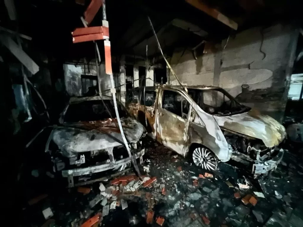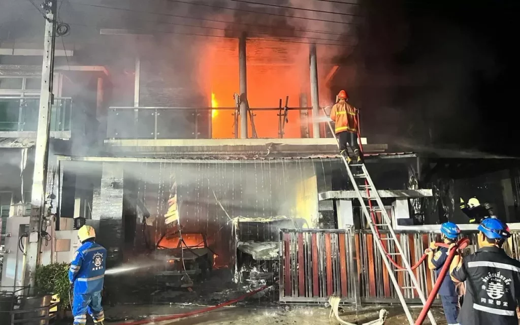 ร.ต.ท.ทวีป เพชรชาติ ร้อยเวร สภ.คอหงส์ ได้รับแจ้ง 24.00 น.วันที่ 22 มกราคม 66 เกิดเหตุไฟไหม้บ้านเลขที่ 164/260 ภายในหมู่บ้าน ว.แลนด์เฮาส์ หมู่ที่ 1 ตำบลท่าข้าม อำเภอหาดใหญ่ จ.สงขลา หลังรับแจ้งจึงรุดตรวจสอบที่เกิดเหตุพบเป็นบ้านสองชั้นมีเจ้าหน้าที่ดับเพลิงเทศบาลตำบลใกล้เคียง กำลังช่วยกันเร่งฉีดน้ำดับไฟ ส่วนคนในบ้านได้อาศัยอยู่กัน 9 คน หนีเอาชีวิตรอดออกมาจากบ้านได้ทั้งหมด ทราบชื่อเจ้าของบ้านชื่อ นายธวัชชัย สิทธิฤกษ์ อายุ 31 ปี ซึ่งเป็นเจ้าของร้านทองแห่งหนึ่งในอำเภอหาดใหญ่ หลังเพลิงสงบชพบว่ามีเฟอร์นิเจอร์ต่างๆ ทรัพย์สินมีค่า รวมทั้งรถยนต์บีวายดี สีแดง ป้ายแดง ราคาล้านสอง รถยนต์ตู้ยี่ห้อ โตโยต้า มาเจสตี้ สีดำ ทะเบียน นค-199 สงขลา ราคา 2 ล้าน และมีรถจักรยานยนต์ 4 คัน ได้ถูกไฟไหม้ได้รับความเสียหายทั้งหมด และยังมีบ้านเลขที่ 164/59 ซึ่งอยู่ติดกันได้รับความเสียหายอีกด้วย ก่อนเจ้าหน้าที่จะปิดกั้นพื้นที่โดยรอบ
