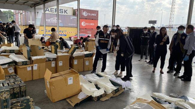 ที่ซุกซ่อนในหมอนยางพาราเตรียมส่งต่างประเทศในครั้งนี้ เกิดจากเมื่อวันที่ 24 มกราคม 2566 เจ้าหน้าที่กรมศุลกากร โดยกองสืบสวนและปราบปรามและสำนักงานศุลกากรท่าเรือกรุงเทพ และหน่วย SITF ร่วมกันตรวจสอบสินค้าต้องสงสัยที่มีความเสี่ยงสูงในการลักลอบลำเลียงยาเสพติดไปยังต่างประเทศ
