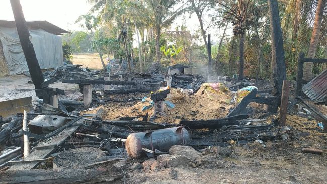 ที่เกิดเหตุบ้านชื่อนางสาวจำเนียร คันศร บ้านเลขที่ 54/4 ม.12 ต.เขากวางทอง อ.หนองฉาง จ.อุทัยธานี ในที่เกิดเหตุไฟกำลังโหมลุกไหม้ที่ยุ้งข้าวกำลังลุกโหม ใกล้กันพบคอกควายติดกับยุ้งข้าวที่ไหม้เสียหายไปพร้อมกับข้าวเปลือกพี่เสียหายประมาณ 5-7 เกวียนเจ้าหน้าที่ใช้เวลาดับเพลิงเกือบ 1 ชั่วโมงกว่าไฟจะสงบลง