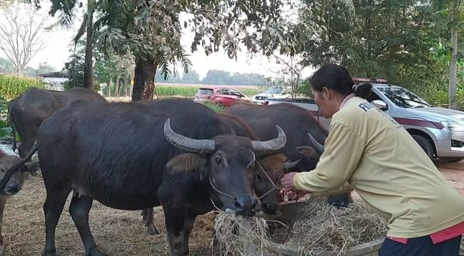 จากการสอบถามไปยังแม่ของเจ้าของบ้านได้ เล่าว่า ขณะนั้นตนเองได้ตื่นมาหุงข้าว มองไปก็เห็นแสงไฟทีแรกก็คิดว่าใครมาจุดอ้อย ที่ไหนได้มันไฟไหม้อยู่ที่ยุ้งข้าว ถึงได้ตะโกนเรียกลูกให้ตื่นพร้อมประสานไปยังเจ้าหน้าที่ จังหวะนั้นได้มีควายทั้งหมด 10 ตัวอยู่ใกล้กับที่เกิดเหตุ ควายบางตัวก็ดิ้นหลุดเพื่อหนีตายเอาชีวิตรอด ส่วนชาวบ้านรีบ มาช่วยกันตัดเชือกแล้วนำออกมาจากที่เกิดเหตุ พบพ่อควาย ได้รับบาดเจ็บจากถูกไฟลวกที่กลางหลัง