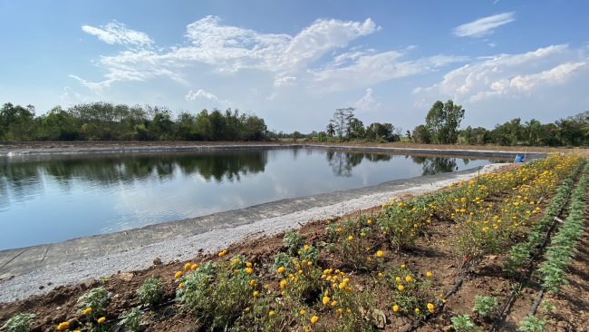 จากนั้นพลเอกประวิตร วงษ์สุวรรณ รองนายกรัฐมนตรี พร้อมด้วยนายโสภณ สุวรรณรัตน์ ผู้ว่าราชการจังหวัดชัยภูมิ หัวหน้าส่วนราชการ ผู้นำองค์กรท้องถิ่น ผู้นำชุนชนและหน่วยงานที่เกี่ยวข้อง ได้ทางเดินทางลงพื้นที่เพื่อดูสถานการณ์น้ำในสถานที่จริง บนพื้นที่โครงการก่อสร้างบ่อกักเก็บน้ำเพื่อการเกษตรด้วยเทคโนโลยีวัสดุปูบ่อกักเก็บน้ำด้วยยางพารา ที่บ้านกุดโง้ง ม.4 ต.บุ่งคล้า อ.เมือง จ.ชัยภูมิ เพื่อตรวจติดตามโครงการก่อสร้าง ช่วยแก้ปัญหาภัยแล้งอย่างยั่งยืน ภายใน (สระดอนตูม)