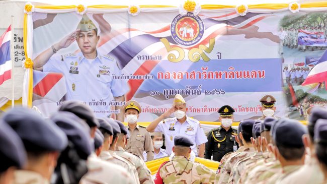 เมื่อเวลา 09.30 น.วันที่ 10 กุมภาพันธ์ 2566 ที่หน้าอาคารกองร้อยบังคับการและบริการ บก.อส.จ.ชบ.อำเภอเมือง จังหวัดชลบุรี นายกองเอกธวัชชัย ศรีทอง ผู้บังคับการกองอาสารักษาดินแดนจังหวัดชลบุรี เป็นประธานเนื่องในพิธีวันคล้ายวันสถาปนากองอาสารักษาดินแดน ครบรอบ 69 ปี โดยมี นางสาวประภัสรา ศรีทอง ประธานแม่บ้านมหาดไทยจังหวัดชลบุรี หัวหน้าส่วนราชการ ทหาร ตำรวจ คณะกรรมการเหล่ากาชาดจังหวัดชลบุรี สมาคมแม่บ้านมหาดไทยจังหวัดชลบุรี ร่วมพิธี