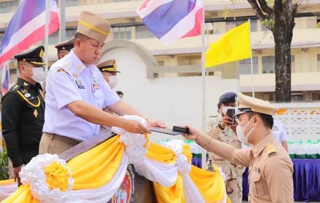 จากนั้น นายกองเอกธวัชชัย ศรีทอง ผู้บังคับการกองอาสารักษาดินแดนจังหวัดชลบุรี ได้มอบเข็มอาสารักษาดินแดนสดุดี ให้แก่ผู้บังคับบัญชาและเจ้าหน้าที่ จำนวน 4 รายและมอบทุนการศึกษาแก่บุตรสมาชิกกองอาสารักษาดินแดน ข้าราชการ พนักงานราชการ และลูกจ้าง จำนวน 69 ทุน โดยได้รับความอนุเคราะห์จากมูลนิธิอาสารักษาดินแดน ในพระบรมราชินูปถัมภ์จำนวน 1 ทุน เป็นเงิน 2,000 บาท และได้รับการสนับสนุนจากสมาคมแม่บ้านมหาดไทย และชมรมแม่บ้านมหาดไทยจังหวัดชลบุรีจำนวน 68 ทุน เป็นเงิน 203,000 บาท รวมเป็นเงินทั้งสิ้น 205,000บาทพร้อมมอบสิ่งของบำรุงขวัญแก่กำลังพลสมาชิกกองอาสารักษาดินแดนจังหวัดชลบุรี ทั้งนี้บริษัท เอส เอ็น ซี ฟอร์เมอร์ จำกัดร่วมบริจาคเงิน 163,000 บาท เพื่อสนับสนุนทุนการศึกษาบุตรสมาชิกกองอาสารักษาดินแดนจังหวัดชลบุรี อีกด้วย