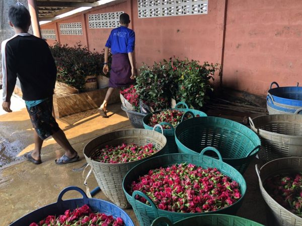เมื่อวันที่ 12 กุมภาพันธ์ 2566 ชาวส่วนในพื้นที่บ้านเจดีย์โค๊ะ หมู่ที่ 3 และหมู่ที่ 6 ต.มหาวัน อ.แม่สอด จ.ตาก ได้ให้คนงานเร่งเก็บดอก เพื่อไปแช่น้ำ และเตรียมห่อกระดาษเพื่อเตรียมการส่งให้ลูกค้าที่ปากคลองตลาด กทม. และเตรียมรับเทศกาลวันเลนไทน์ ที่จะถึงในวันที่ 14 กุมภาพันธ์ 66 เพราะยอดสั่งดอกกุหลาบเพิ่มขึ้น โดยเฉพาะปีนี้ เจ้าของไร่กุหลาบเริ่มมีลูกค้าสั่งจองมาแล้ว ขณะเดียวกันเมื่อมีออเดอร์หรือ การสั่งซื้อมามาก ราคาก็เริ่มสูงขึ้น เช่น ราคาดอกกุหลาบเกรดเอ.สูงถึงดอกละ 8 ถึง 9 บาท ถ้าเกรดปานกลาง ก็จะลดลงมา ขึ้นอยู่กับการตกลงซื้อขายระหว่างผู้ซื้อกับผู้ขาย