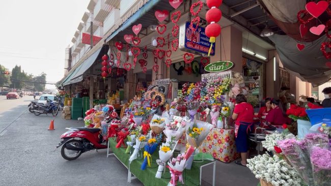 บรรยายกาศร้านขายดอกไม้สดที่ที่บริเวณริมถนนชวนชื่น ต.ในเมือง อ.เมือง จ.ขอนแก่น คึกคักเป็นพิเศษต้อนรับเทศกาลวันแห่งความรัก หรือ วันวาเลนไทน์ ที่บริเวณริมถนนชวนชื่น ต.ในเมือง อ.เมือง จ.ขอนแก่น ซึ่งบริเวณแห่งนี้ถือเป็นย่านการค้าที่สำคัญในการจำหน่ายดอกไม้สด และดอกไม้ทุกชนิด ของ จ.ขอนแก่น โดยเฉพาะที่ร้านฉันท์ดอกไม้สด ซึ่งพบว่ามีลูกค้ามาเลือกซื้อดอกไม้ และดอกกุหลาบ อย่างต่อเนื่อง โดยยอดสั่งซื้อดอกกุหลาบปีนี้เพิ่มขึ้นเล็กน้อยแต่ราคาดอกกุหลาบแพงที่สุดตั้งแต่เปิดร้านมา