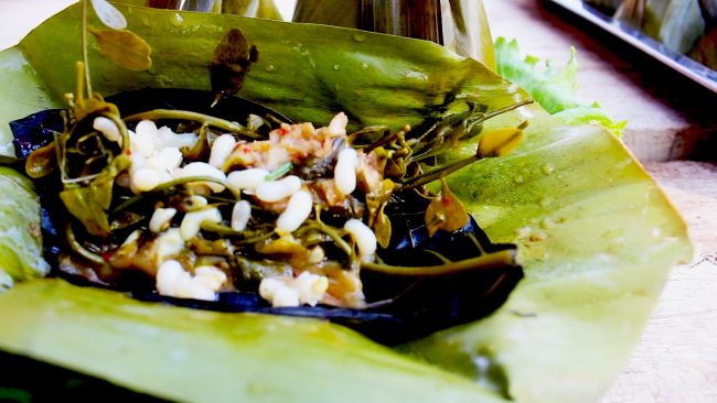 สุดท้ายใส่ไข่มดแดงลงไป คนให้เข้ากันอีกครั้ง แล้วห่อด้วยใบตอง นำไปนึ่งให้สุก ก็จะได้เมนูชั้นสูงอย่าง “ห่อหมกผักหวานไข่มดแดง” มารับประทานกันแล้ว รสชาติดีหนึ่งปีจะได้ลิ้มลองสักครั้ง ซึ่งถือเป็นขั้นตอนการทำที่ไม่ยุ่งยากแต่หารับประทานได้ยากยิ่ง.