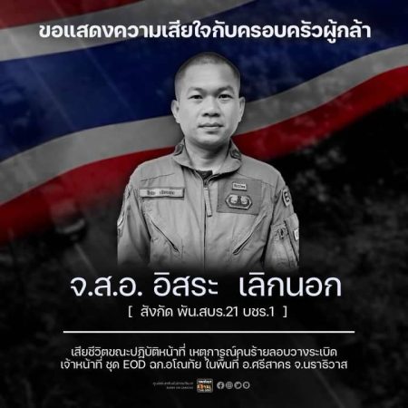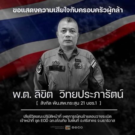 วันนี้(4 มีนาคม66)ผู้สื่อข่าวรายงานความคืบหน้าเหตุคนร้ายลอบดักระเบิดรถยนต์เจ้าหน้าที่ชุดเก็บกู้และทำลายวัตถุระเบิดEODหน่วยเฉพาะกิจอโณทัย เป็นเหตุให้รถยนต์กระเด็นงายท้องเสียหายทั้งคันเป็นเหตุให้มีผู้เสียชีวิต2นายและได้รับบาดเจ็บสาหัสอีก1นาย ถูกนำส่งโรงพยาบาลศรีสาคร จากการตรวจสอบพบว่าเป็นหนึ่งรถยนต์ขบวนรถยนต์คณะรองแม่ทัพภาคที่4 กลับจากตรวจสอบจุดเกิดเหตุคนร้ายลอบขว้างปาระเบิดไหปบอมย์และยิงใส่ฐานปฏิบัติการแต่โชคดีไม่มีใครได้รับบาดเจ็บจากเหตุดังกล่าว