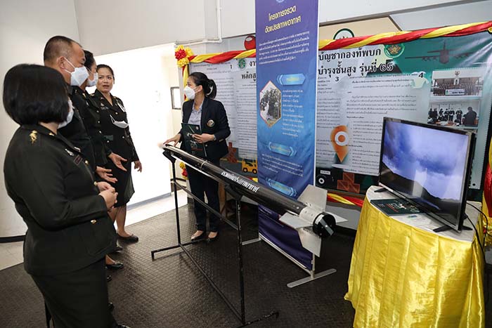 พร้อมกันนี้ นักพัฒนาและเจ้าหน้าที่ของ สทป. ได้เข้าร่วมจัดนิทรรศการแนะนำการให้บริการศูนย์ทดสอบมาตรฐานผลิตภัณฑ์เพื่อความมั่นคงของ สทป. และแสดงผลงานวิจัยและพัฒนาโครงการวิจัยและพัฒนาองค์ประกอบพื้นฐานระบบยานไร้คนขับ ระยะที่ 2 และโครงการวิจัยและพัฒนาจรวดดัดแปรสภาพอากาศ ณ โรงเรียนส่งกำลังบำรุงทหารบก