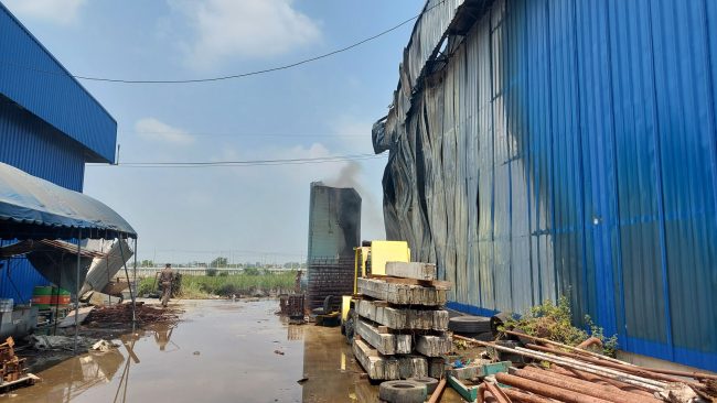 ซึ่งพบว่าเพลิงนั้นลุกไหม้ที่ ด้านหลังอาคารโกดังหลังแรก คาดว่าตรงเครื่องทำความร้อน เพื่อใช้อบไม้ และเพลิงลุกลามขึ้นไปที่โครงหลังคาเมทัลชีท ด้านหลัง ขณะที่ไม้พาเลทบางส่วน ถูกเพลิงไหม้ไปด้วยเช่นกัน