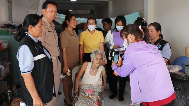 โดยคณะฯ ได้นำอุปกรณ์การยืนยันตัวตน,การลงทะเบียนและระบบการตรวจสอบบัตรประจำตัวประชาชนมาให้บริการแบบถึงบ้านตลอดทั้งวันในวันนี้ ซึ่งจากการตรวจสอบพบว่าส่วนใหญ่อยู่กับคนดูแล หรือหลานๆ ซึ่งไม่สามารถเดินทางมายืนยันตัวตนที่ธนาคาร หรือสถานที่รับลงทะเบียนได้ ซึ่งเจ้าหน้าที่ได้อธิบายขั้นตอนและดำเนินการยืนยันตัวตนจนสำเร็จ ขณะที่ผู้พิการบางคนที่ตรวจพบว่าไม่มีบัญชีธนาคาร หรือเอกสารทางการเงิน ก็ได้มีการแนะนำให้ผู้ดูแลหรือหลานๆ นำเอกสารของคุณตา คุณยาย มาติดต่อกับเทศบาลฯ เพื่อดำเนินการให้แล้วเสร็จและสามารถรับสิทธิ์ได้ทันงวดแรก ในวันที 1 เม.ย.นี้