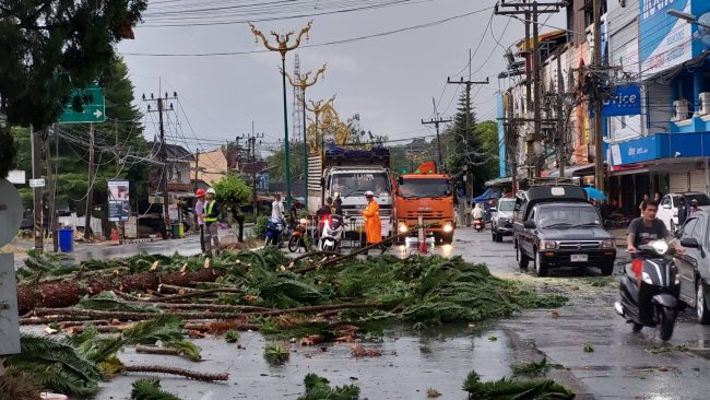 ยะลา – ในพื้นที่ อ.เบตง เกิดเหตุพายุฝน ฤดูร้อนพัดถล่มบ้านและต้นสนกว่า 40 ปีหักโค่นขวางถนน ส่งผลให้ไฟฟ้าดับและบ้านเรือนได้รับความเสียหาย โชคดีไม่มีใครได้รับบาดเจ็บและเสียชีวิต