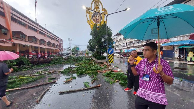 ที่หน้ากองบรรเทาสาธารณภัยเทศบาลเมืองเบตง อ.เบตง จ.ยะลา นายธงชัย เทพรอด ปลัดเทศบาลเมืองเบตง รักษาราชการแทน นายกเทศมนตรีเมืองเบตง เร่งประสานพนักงานการไฟฟ้า อำเภอเบตง จังหวัดยะลาให้เร่งระดมพนักงาน ออกไปยกและตัดกระแสไฟฟ้า หลังจากถูกพายุฤดูร้อนพัดถล่ม ทำให้ไฟฟ้าดับช่วงถนนสุขยางค์ ขาเข้าตัวเมืองเบตง ในขณะเดียวกันได้มอบหมายให้เจ้าหน้าที่บรรเทาสาธารณภัยเทศบาลเมืองเบตง สำรวจอาคารที่ทำการ กองบรรเทาสาธรณภัยฯและบ้านเรือนประชาชนที่ได้รับความ เพื่อบรรเทาสาธารณภัยเฉพาะหน้า ก่อนที่จะนำวัสดุไปซ่อมแซมบ้านที่ได้รับความเสียหาย ในภายหลัง