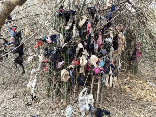 กำแพงเพชร – เชื่อฝีมือโรคจิต..พบชุดชั้นในหลากสีห้อยกอไผ่ข้างถนนหลัง รพ.คลองขลุง นับร้อยๆตัว คาดหัวขโมยลักมาดมแล้วทิ้ง เผยยกทรง-กกน.คนหลายหมู่บ้านหายบ่อย ยังจับคนลักไม่ได้