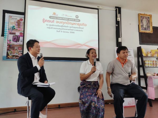 นายศุภโชค วิสุทธิธาดา ผู้อำนวยการฝ่ายวางแผนองค์กร บริษัท โตโยต้า มอเตอร์ ประเทศไทย จำกัด นายณัฐพล กลุ่มเหรียญทอง รองประธานสภาอุตสาหกรรม จังหวัดขอนแก่น และนายวินัย วิโรจน์จริยากร กรรมการบริหาร SME Thailand ร่วมเปิด “กิจกรรม TSI-The Wisdom Workshop รู้ครบ… จบทุกปัญหาธุรกิจ” ครั้งที่ 2 ตอนขายของหลักสิบ ให้ได้กำไรหลักล้าน ณ ศูนย์การเรียนรู้โตโยต้า ธุรกิจชุมชนพัฒน์ กลุ่มข้าวแตนสมุนไพรสายทิพย์ จังหวัดขอนแก่น