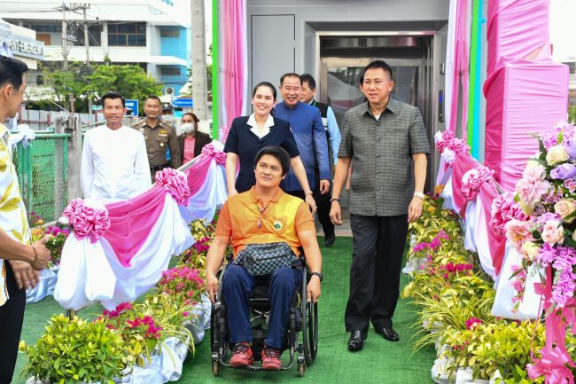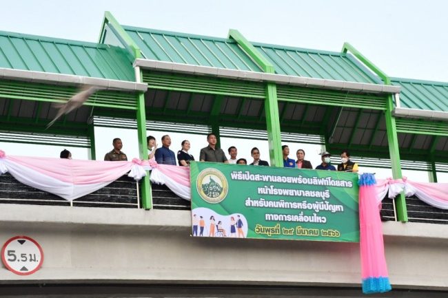 เมื่อเวลา 09.30 น. วันที่ 29 มีนาคม 2566 นายธวัชชัย ศรีทอง ผู้ว่าราชการจังหวัดชลบุรี เป็นประธานเปิดโครงการก่อสร้างสะพานลอยพร้อมลิฟท์โดยสารสำหรับคนพิการหรือผู้มีปัญหาทางการเคลื่อนไหวข้ามถนนสุขุมวิท หน้าโรงพยาบาลชลบุรี หมู่ที่ 2 ตำบลบ้านสวน อ.เมือง จ.ชลบุรี โดยมีนางสาวประภัสรา ศรีทอง นายกเหล่ากาชาดจังหวัดชลบุรี นายประสิทธิ์ อินทโชติ นายอำเภอเมืองชลบุรี นายวิชิต ชิตวิเศษ นายกเทศมนตรีเทศบาลเมืองบ้านสวน นายแพทย์อภิรัตน์ กตัญญุตานนท์ นายแพทย์สาธารณสุขจังหวัดชลบุรี แพทย์หญิงจิรวรรณ อารยะพงษ์ ผู้อำนวยการโรงพยาบาลชลบุรี เจ้าหน้าที่เทศบาลเมืองบ้านสวน เจ้าหนาที่โรงพยาบาลชลบุรี ผู้ที่เกี่ยวข้อง และประชาชน ร่วมพิธีเปิด บริเวณสะพานลอยข้ามถนนหน้าโรงพยาบาลชลบุรี
