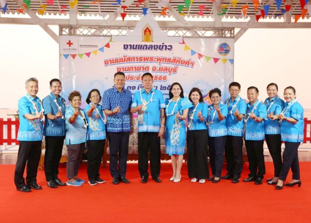 เมื่อเวลา17.30น.วันที่ 31 มี.ค.2566 ที่สะพานอัษฎางค์ “พระจุฑาธุชราชฐาน” อำเภอเกาะสีชัง จังหวัดชลบุรี นายธวัชชัย ศรีทอง ผู้ว่าราชการจังหวัดชลบุรีพร้อมนางสาวประภัสรา ศรีทอง นายกเหล่ากาชาดจังหวัดชลบุรี นายนริศ นิรามัยวงศ์ รองผู้ว่าราชการจังหวัดชลบุรี นายชัยพร แพภิรมย์รัตน์ ปลัดจังหวัดชลบุรี นางดารัตน์ สุรักขกะ รองปลัดองค์การบริหารส่วนจังหวัดชลบุรี นายนันทวัฒน์ ทองช่วง นายอำเภอเกาะสีชัง นายสมศักดิ์ จุฑาวงษ์กุล นายอำเภอบ้านบึง นายสรศักดิ์ เภตรา นายกเทศมนตรีตำบลเกาะสีชัง คณะกรรมการและสมาชิกกาชาดจังหวัดชลบุรี ร่วมแถลงข่าวงานนมัสการ พระพุทธสิหิงค์ฯ งานกาชาด และงานสงกรานต์จังหวัดชลบุรี ระหว่างวันที่11-19 เมษายน 2566 ณ บริเวณสนามหน้าศาลากลางจังหวัดชลบุรี ก่อนการแถลงข่าวได้มีการแสดงรำไทยของเด็กนักเรียนเกาะสีชังและการแสดงหุ่นละครเล็ก (โจหลุยส์)สร้างสีสันให้กับการแถลงข่าว