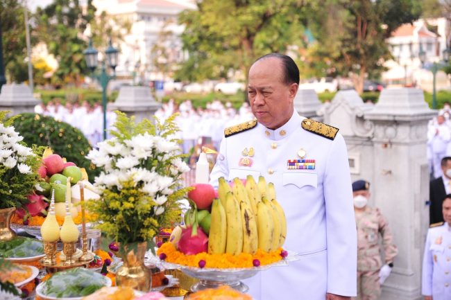 โอกาสนี้ พลเอก อนุพงษ์ เผ่าจินดา รัฐมนตรีว่าการกระทรวงมหาดไทย นำคณะผู้บริหารระดับสูง สักการะศาลพระชัยมงคล ศาลพระกาฬไชยศรี และสักการะพระอนุสาวรีย์สมเด็จพระเจ้าบรมวงศ์เธอ กรมพระยาดำรงราชานุภาพ โดยหลั่งน้ำจากพระสังข์ที่ป้ายพระนาม “ดำรงราชานุภาพ” เสร็จแล้วเจิม ถวายพวงมาลัย โปรยดอกไม้ และวางพุ่มดอกไม้ถวายสักการะ จุดธูป เทียนที่เครื่องทองน้อย และที่โต๊ะเครื่องสังเวย ผู้บริหารระดับสูงร่วมปักธูปบริวารทั้งหมดที่เครื่องสังเวย โหร พราหมณ์ อ่านคำบวงสรวงเพื่อถวายสักการะ จบแล้ว พลเอก อนุพงษ์ เผ่าจินดา รัฐมนตรีว่าการกระทรวงมหาดไทย กล่าวคำสดุดี และตรวจเยี่ยมแถวข้าราชการและพนักงานรัฐวิสาหกิจ เป็นอันเสร็จพิธีวางพุ่มดอกไม้ถวายสักการะฯ