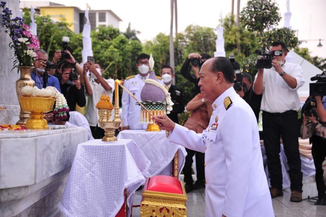 ทั้งนี้ ตั้งแต่เวลา 05.30 น. มีส่วนราชการและหน่วยงานรัฐวิสาหกิจในสังกัดกระทรวงต่าง ๆ และภาคีเครือข่ายทุกภาคส่วนร่วมวางพุ่มดอกไม้ โดยนายสุทธิพงษ์ จุลเจริญ ปลัดกระทรวงมหาดไทย เป็นผู้นำผู้บริหารสำนักงานปลัดกระทรวงมหาดไทย และ ดร.วันดี กุญชรยาคง จุลเจริญ นายกสมาคมแม่บ้านมหาดไทย เป็นผู้นำอุปนายกสมาคม คณะกรรมการบริหารสมาคม และสมาชิกสมาคมแม่บ้านมหาดไทย ร่วมวางพุ่มดอกไม้ถวายสักการะพระอนุสาวรีย์สมเด็จพระเจ้าบรมวงศ์เธอ กรมพระยาดำรงราชานุภาพ