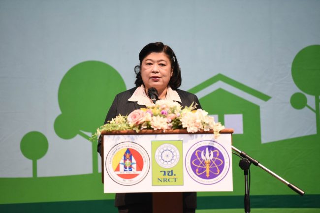 ดร.วิภารัตน์ ดีอ่อง ผู้อำนวยการสำนักงานการวิจัยแห่งชาติ กล่าวว่า ความร่วมมือระหว่าง วช. และ กอ.รมน. ในการใช้ประโยชน์องค์ความรู้จากผลงานวิจัยและนวัตกรรม มีมาตั้งแต่ปี 2562 ซึ่งมีกลไกของศูนย์ประสานการปฏิบัติที่ 1 – 5 และสำนักนโยบายและยุทธศาสตร์ความมั่นคง ร่วมขับเคลื่อนกิจกรรมส่งเสริมผลงานวิจัยและนวัตกรรมนำสู่ศูนย์เรียนรู้ของเครือข่ายปราชญ์เพื่อความมั่นคงและพื้นที่ชุมชนเป้าหมายในความดูแลของ กอ.รมน. จำนวนมากกว่า 400 ชุมชนใน 77 จังหวัด จำนวนมากกว่า 30 นวัตกรรม โดย กอ.รมน. ทำหน้าที่คัดกรองพื้นที่ และ วช. คัดกรององค์ความรู้ที่พร้อมถ่ายทอดขยายผลสอดรับกับบริบทความต้องการของพื้นที่เป้าหมาย ในการนำงานวิจัยและนวัตกรรมไปช่วยในการยกระดับศักยภาพความเข้มแข็งของชุมชน และมีนักวิจัยที่พร้อมถ่ายทอดองค์ความรู้ในการหนุนเสริมพลังชุมชนขยายผลนวัตกรรมสู่การสร้างความมั่นคง ตลอดจนเครือข่ายภาคจังหวัดที่เกี่ยวข้องร่วมกันบูรณาการสู่การขับเคลื่อนการพัฒนาชุมชนต้นแบบ ชุมชนเข้มแข็งด้วยวิจัยและนวัตกรรมเพื่อตอบโจทย์การพัฒนาประเทศได้อย่างยั่งยืนต่อไป