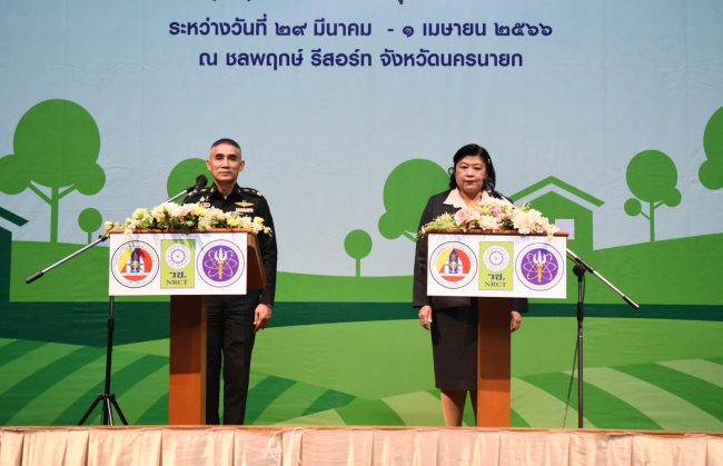 กองอำนวยการรักษาความมั่นคงภายในราชอาณาจักร (กอ.รมน.) และสำนักงานการวิจัยแห่งชาติ (วช.) กระทรวงการอุดมศึกษา วิทยาศาสตร์ วิจัยและนวัตกรรม (อว.) โดย พลโท วิเศษ เจริญสุข รองผู้อำนวยการศูนย์ประสานการปฏิบัติที่ 1 กอ.รมน. และ ดร.วิภารัตน์ ดีอ่อง ผู้อำนวยการสำนักงานการวิจัยแห่งชาติ เป็นประธานเปิดกิจกรรม “การเสริมสร้างปราชญ์เพื่อความมั่นคงและเครือข่ายภาคจังหวัดเพื่อการพัฒนาที่ยั่งยืน” ในวันที่ 30 มีนาคม 2566 เพื่อบูรณาการความร่วมมือระหว่างภาคความมั่นคงและภาคการวิจัยร่วมเดินหน้าสร้างความเข้มแข็งให้เครือข่ายปราชญ์เพื่อความมั่นคง เพื่อการพัฒนาที่ยั่งยืน ด้วยงานวิจัยและนวัตกรรม ซึ่งมุ่งเน้นการถ่ายทอดองค์ความรู้นำสู่ศูนย์การเรียนรู้ของเครือข่ายปราชญ์เพื่อความมั่นคงและพื้นที่ชุมชนเป้าหมาย ของ กอ.รมน. ยกระดับคุณภาพชีวิตชุมชนเข้มแข็งด้วยงานวิจัยและนวัตกรรม ระหว่างวันที่ 29 มีนาคม – 1 เมษายน 2566 ณ ห้องประชุมราชพฤกษ์ ชลพฤกษ์ รีสอร์ท จังหวัดนครนายก