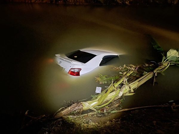 ที่เกิดเหตุพบหญิงสาวอายุประมาณ 35 ปี ร่างกายเปียกน้ำยืนตัวสั่น มีร่องรอยบาดเจ็บที่หน้าผาก ไม่ประสงค์ไปโรงพยาบาล ในแม่น้ำพบรถเก๋งโตโยต้า วีออส สีขาว จมอยู่ในน้ำ กระจกรถข้างคนขับถูกเปิดออก และประตูรถเปิดอยู่ ส่วนริมแม่น้ำพบต้นกล้วยล้มระเนระนาดหลายต้น