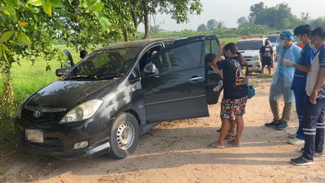 นายจรัญ แซ่ตั๊ง อายุ 60 ปี ชาวบ้านที่มาเก็บผักและเป็นคนไปแจ้งผู้ใหญ่บ้านให้ทราบ เล่าว่า ช่วงเย็นวันที่ 4 เม.ย. เห็นรถคันนี้จอดติดเครื่องยนต์อยู่ เข้าไปส่องมองผ่านกระจกแต่ไม่เห็นว่าเป็นใคร คิดว่าคนในรถมานอนพัก รุ่งขึ้นยังเห็นรถจอดอยู่ที่เดิมทั้งวัน กระทั่งเช้าวันนี้ตั้งใจจะมาเก็บผัก พอขี่รถ จยย.ผ่านรถได้กลิ่นเหม็น รีบไปแจ้งผู้ใหญ่บ้านประสานตำรวจและหน่วยกู้ภัยให้มาตรวจสอบ