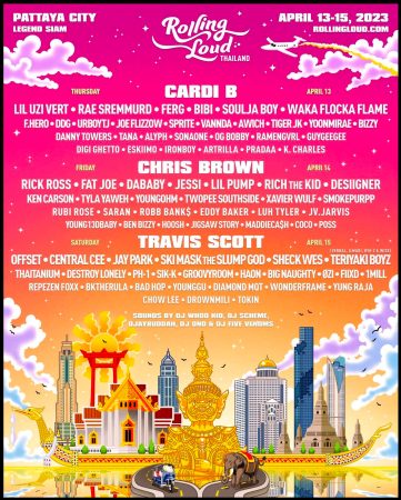 สงกรานต์ระอุทะลุปรอทกับ Rolling Loud Thailand 2023 ที่สุดของเทศกาลดนตรีฮิปฮอปที่ยิ่งใหญ่ระดับโลก จัดหนักทุ่มงบ 1,000 ล้านบาท คว้าศิลปินระดับโลกกว่า 70 ชีวิต จัดขึ้นครั้งแรกในประเทศไทยและเอเชีย