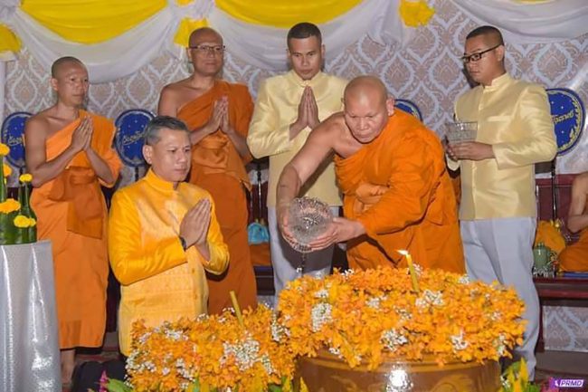 ต่อมาได้มีพิธีเจริญพระพุทธมนต์ โดย พระราชรัตนโมลี ( มหาสมยง ) เจ้าคณะจังหวัดมุกดาหาร เป็นประธานในพิธีฝ่ายสงฆ์ จากนั้นเสร็จพิธีเจริญพระพุทธมนต์ และคณะนางรำทั้ง 7 อำเภอ ได้ร่วมรำเฉลิมฉลองน้ำสรงพระราชทานอีกด้วย …