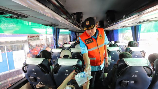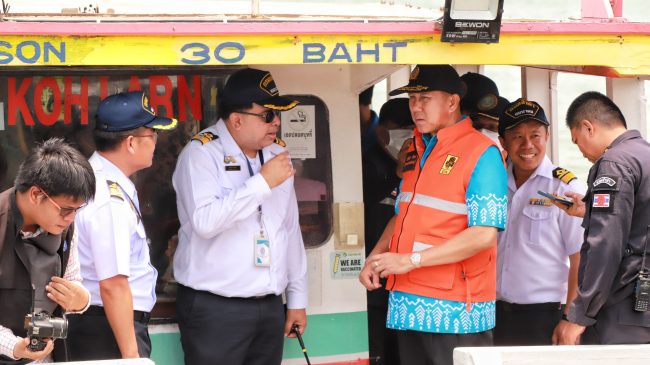 จากนั้นลงพื้นที่ตรวจเยี่ยมจุดบริการทางน้ำท่าเรือแหลมบาลีฮาย อำเภอบางละมุง จังหวัดชลบุรี และตรวจเยี่ยมจุดบริการสถานีรถโดยสารปรับอากาศ พัทยา – กรุงเทพฯ พัทยาเหนือ