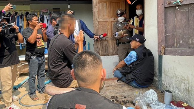 สอบสวนพยานเบื้องต้นทราบว่า คนร้ายที่ก่อเหตุชื่อนายสุเทพ บุญบวร อายุ 47 ปี ที่อยู่ตามบัตรประชาชนเลขที่ 60 หมู่ 6 ต.ขุนทะเล อ.ลานสกา จ.นครศรีธรรมราช โดยก่อนเกิดเหตุ น.ส.ณัชพร ยอดศรี อายุ 32 ปี ภรรยานายสุเทพ ขับรถเก๋งฮอนด้า สีขาว ทะเบียน กน 8210 ปราจีนบุรี ออกไปนอกบ้านแล้วซื้อเบียร์กลับมานั่งกินที่โต๊ะหลังบ้าน มีนายยุทธพงษ์ เพื่อนรุ่นน้องของ น.ส.ณัฐพร มานั่งดื่มด้วย สร้างความไม่พอใจให้กับนายสุเทพ เดินเข้าไปใช้ปืนกระหน่ำยิงผู้ตายถึง 5 นัดซ้อน ก่อนหลบหนีไป
