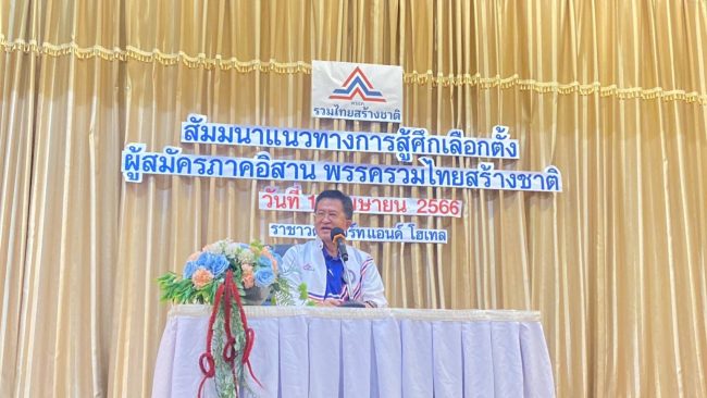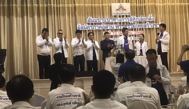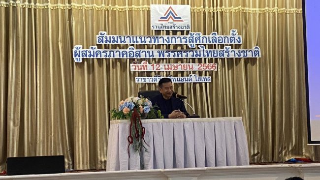 เมื่อวันที่ 12 เมษายน ที่โรงแรมราชาวดีรีสอร์ทแอนด์ โฮเทล จังหวัดขอนแก่น พรรครวมไทยสร้างชาติ (รทสช.) ได้จัดสัมมนาแนวทางการสู้ศึกเลือกตั้งภาคอีสาน และติวเข้มเพื่อให้ความรู้เกี่ยวกับกฎหมายของคณะกรรมการการเลือกตั้ง(กกต.)แก่ผู้สมัครส.ส.เขต ส.ส.บัญชีรายชื่อ สาขาพรรค และตัวแทนพรรคใน 20 จังหวัดภาคอีสานกว่า 160 คน โดยมี นายชัชวาลล์ คงอุดม นายวิทยา แก้วภราดัย นายเสกสกล อัตถาวงศ์ รองหน้าหน้าพรรค และ นายจำลอง ครุฑขุนทด คณะทำงานการเลือกตั้ง ส.ส.ภาคอีสาน มาร่วมให้ความรู้