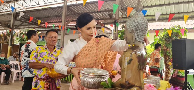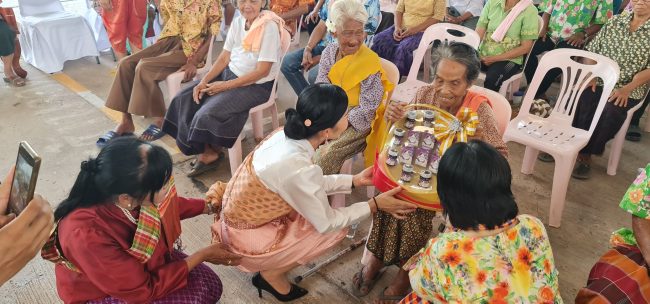 เมื่อวันที่ 13 เม.ย.66 ที่องค์การบริหารส่วนตำบลบ้านแก้ง อ.แก้งคร้อ จ.ชัยภูมิ ผู้สื่อข่าวรายงานว่า นางสาวนันทิดา ภูมาศ นายกองค์การบริหารส่วนตำบลบ้านแก้ง ได้จัดกิจกรรมส่งเสริมคุณภาพชีวิตผู้สูงอายุ จิตแจ่มใส ร่างกายแข็งแรง ประจำปี 2566 พร้อมกล่าวว่า กองทุนหลักประกันสุขภาพองค์การบริหารส่วนตำบลบ้านแก้ง เป็นงานด้านสาธารณสุขและชุมชน มีหน้าที่หลักในการพัฒนาคุณภาพชีวิตสูงอายุในตำบล เพื่อคุณภาพชีวิตที่ดีของผู้สูงอายุ ซึ่งผู้สูงอายุสามารถทำคุณประโยชน์ต่อสังคมควบคู่ไปกับลูกหลานคนรุ่นหลังและเป็นแบบอย่างการใช้ชีวิตในอนาคตอย่างมีความสุข จึงได้ให้มีกิจกรรมขึ้นในวันนี้ และถือโอกาสสืบสานประเพณีอันดีของไทยวันสงกรานต์ สรงน้ำพระพุทธรูป รดน้ำดำหัวและขอพรผู้ใหญ่ไปพร้อมด้วย