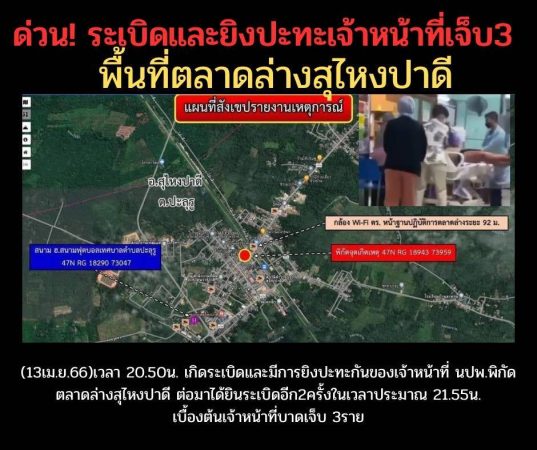 ไฟใต้ระอุ!คนร้ายกราดยิงตำรวจ-บึ้มถล่มฐานปฎิบัติการสุไหงปาดี บาดเจ็บ 3 ราย