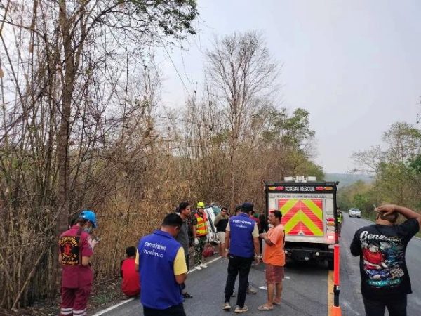 เพชรบูรณ์–เกิดอุบัติเหตุสุดสลด 6 ล้อขนย้ายเวทีหมอลำ เตรียมเปิดแสดงที่หล่มสัก แต่ขึ้นเขาน้ำหนาวไม่ไหว รถถอยหลังพลิกคว่ำตกข้างทางเทกระจาดทั้งคนและข้าวของ ดับ 1 เจ็บ 7 โดดหนีทัน 1