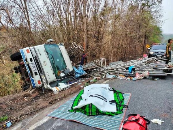 เพชรบูรณ์–เกิดอุบัติเหตุสุดสลด 6 ล้อขนย้ายเวทีหมอลำ เตรียมเปิดแสดงที่หล่มสัก แต่ขึ้นเขาน้ำหนาวไม่ไหว รถถอยหลังพลิกคว่ำตกข้างทางเทกระจาดทั้งคนและข้าวของ ดับ 1 เจ็บ 7 โดดหนีทัน 1