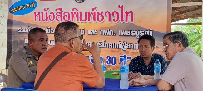 หนังสือพิมพ์พิทักษ์ประชาธิปไตย “ชาวไท” โดยนายศุภเดช คำพุฒ บรรณาธิการ เจ้าของ ผู้พิมพ์โฆษณา พร้อมด้วยนายสมชาย คำพุฒ บรรณาธิการชาวไททูเดย์ออนไลน์ ร่วมกับ นายปริญญา โตใหญ่ ผจก.การไฟฟ้าส่วนภูมิภาคจังหวัดเพชรบูรณ์ และ พ.ต.ท.ยิ่งยศ ใกล้สมจิตต์ สว.สืบสวน สภ.เมืองเพชรบูรณ์ และ ร.ต.ต.วีระพล พันธุ์ไพบูลย์ รอง สวป.สภ.เมืองเพชรบูรณ์ ได้นำสิ่งของอุปโภค-บริโภค พร้อมด้วยเงินสดอีกจำนวน 16,600 บาท ไปมอบให้แก่ราษฎรผู้ยากไร้ ณ หมู่ที่ 4 ตำบลบ้านโตก อำเภอเมืองเพชรบูรณ์ จังหวัดเพชรบูรณ์ ในโอกาสครบรอบ 30 ปี หนังสือพิมพ์ชาวไท