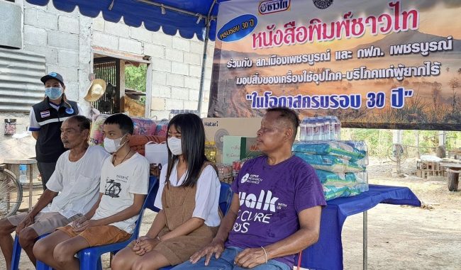 เนื่องในโอกาสครบรอบวันสถาปนา 30 ปี หนังสือพิมพ์พิทักษ์ประชาธิปไตยชาวไท โดยมีคณะผู้บริหาร นสพ.ชาวไท ตลอดจนพี่น้องสื่อมวลชนทั้งส่วนกลางและส่วนภูมิภาค พร้อมทั้งคณะผู้บริหาร กฟภ.เพชรบูรณ์ และเจ้าหน้าที่ตำรวจ สภ.เมืองเพชรบูรณ์ เข้าร่วมพิธีมอบสิ่งของเครื่องใช้แก่ครอบครัวผู้ยากไร้ อาทิ พัดลม ผ้าห่ม หมอน ผ้าเช็ดตัว ข้าวสาร น้ำดื่ม นม ไข่ไก่ เครื่องครัว อีกหลายรายการด้วยกัน เพื่อเป็นการส่งธารน้ำใจไปสู่ครอบครัวผู้ยากไร้ผู้ขาดโอกาสในตำบลบ้านโตก