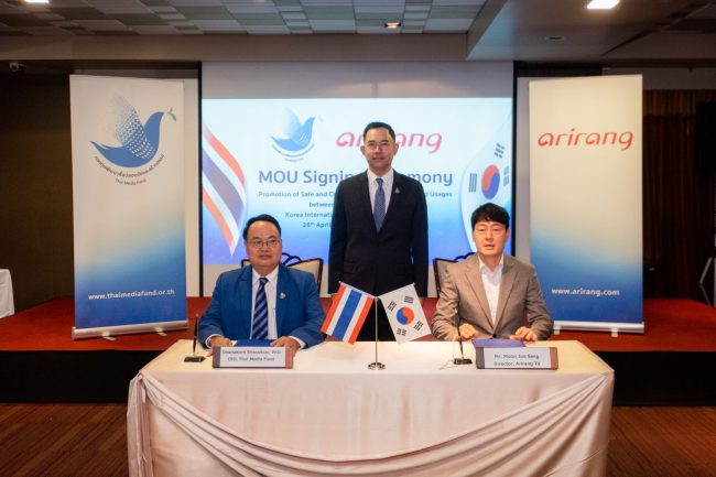 เมื่อวันที่ 26 เมษายน ระหว่างกองทุนพัฒนาสื่อปลอดภัยและสร้างสรรค์ (TMF) และ Korea International Broadcasting Foundation (Arirang TV) ร่วมจัดงาน 2023 International Broadcasting Leadership Program Media Forum in Thailand: “Irreplaceable Asian Content” ระหว่างวันที่ 25 – 27 เมษายน มีวัตถุประสงค์ในการส่งเสริมการเรียนรู้ และแบ่งปันประสบการณ์ด้านการบริหารการผลิต เทคโนโลยีการผลิต เทคโนโลยีสื่อ การส่งเสริมการเข้าถึง และใช้ประโยชน์สื่อปลอดภัยและสร้างสรรค์ เพื่อส่งเสริมให้มีการผลิตสื่อปลอดภัยและสร้างสรรค์ร่วมกัน ระหว่าง TMF และ Arirang TV เพื่อส่งเสริมประชาสัมพันธ์ผลงานของ TMF และ Arirang TV การแลกเปลี่ยนข้อมูล รวมถึงส่งเสริมและสนับสนุนการบริหารจัดการสิทธิในทรัพย์สินทางปัญญา และเพื่อเผยแพร่ประชาสัมพันธ์กิจกรรมของ TMF และ Arirang TV เพื่อให้ผู้ผลิตสื่อ องค์กรชุมชน องค์กรเอกชน องค์กรสาธารณประโยชน์ ส่วนราชการ รัฐวิสาหกิจ หรือหน่วยงานอื่นของรัฐ ที่ดำเนินกิจกรรมเกี่ยวกับสื่อให้มีการผลิตและพัฒนาสื่อปลอดภัย และสร้างสรรค์ ณ ห้อง Function ELEVEN ชั้น 11 สยาม แอท สยาม ดีไซน์ โฮเต็ล กรุงเทพฯ