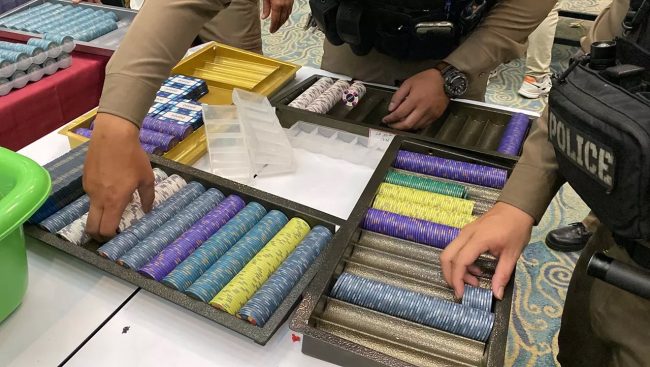 ชลบุรี-ตำรวจบุกทลายบ่อนอินเดียในโรงแรมดังของ จ.ชลบุรี รวบนักพนันเกือบร้อยคน พบเงินสะพัดกว่า 500 ล้านรูปี อ้างจ่ายตำรวจแล้ว 2.4 ล้านบาท