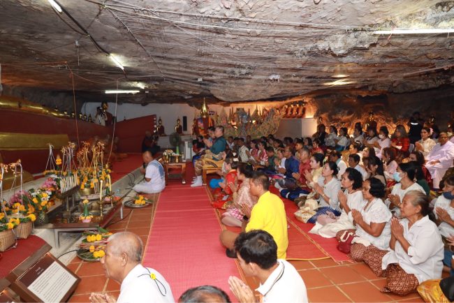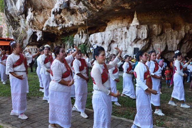 วันนี้ (4 พฤษภาคม 2566) ที่ วัดถ้ำตลอด หมู่ที่ 6 ตำบลเขาแดง อำเภอสะบ้าย้อย จังหวัดสงขลา พลเรือตรี สมเกียรติ ผลประยูร เลขาธิการศูนย์อำนวยการบริหารจังหวัดชายแดนภาคใต้ (ศอ.บต.) นำส่วนราชการและพี่น้องประชาชนในพื้นที่ ร่วมเดินขบวนงานสืบสานประเพณีพหุวัฒนธรรมท้องถิ่นและการท่องเที่ยว เปิดประตูสู่เขาแดง ย้อนตำนานถ้ำตลอด 3,000 ปี “ขนมโคเข้าถ้ำ ห่มผ้าพระนอน บุญเดือน 6 ทอดผ้าป่ามหาบุญ” จัดโดย วัดถ้ำตลอด และผู้นำท้องถิ่นองค์กรส่วนราชการคณะพุทธศาสนิกชน และอำเภอสะบ้าย้อย เพื่อเป็นการฟื้นฟู อนุรักษ์ประเพณี พหุวัฒนธรรม และส่งเสริมการท่องเที่ยวในชุมชน ซึ่งในกิจกรรมมีการตื่นตาตื่นใจด้วยการชมขบวนพาเหรดช้างจำนวน 5 เชือก นำโดยเลขาธิการ ศอ.บต. เพื่อนำขนมโคเข้าถ้ำตลอด และร่วมทำพิธีบวงสรวงพ่อปู่พญานาคราชเพชรสุวรรณ ตามด้วยพิธีบูชาทวดโต๊ะหยัง และชมการแสดงถวายมโนราห์ และสิ้นสุดด้วยการแสดงปันจักสีลัตของเยาวชนในพื้นที่ ท่ามกลางประชาชนในพื้นที่ และทั่วสารทิศ เข้าร่วมในพิธีและชมความสวยงามของถ้ำตลอดจำนวนมาก