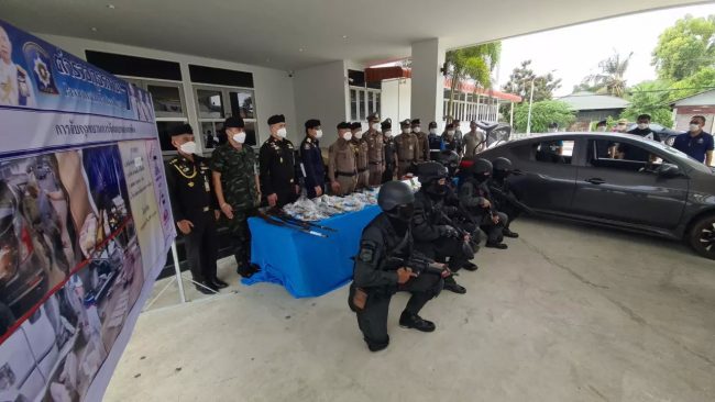 พล.ต.ท.ธนายุตม์ แถลงว่า เจ้าหน้าที่ฝ่ายความมั่นคงชายแดนในท้องที่ สภ.ทองผาภูมิ ได้ทำการจับกุมผู้ต้องหา 2 ราย คือ นายพิทักษ์ โม่อ่อน หรือ ดำ บ้านโป่ง อายุ 71 ปี และนายณัฐพล หรือ เต้ย กรองแก้ว อายุ 25 ปี พร้อมของกลางยาบ้าจำนวน 205 มัดรวมประมาณ 410,000 เม็ด ยาไอซ์ จำนวน 9 ถุง รวมยาไอซ์ จำนวน 9 กิโลกรัม รถยนต์กระบะ โตโยต้า Hilux สีเทา หมายเลขทะเบียน บร – 9234 กาญจนบุรี โทรศัพท์มือถือ จำนวน 1 เครื่อง รถยนต์ เก๋ง NISSAN อัลเมร่า สีเทา หมายเลขทะเบียน 4 กจ 9659 กรุงเทพมหานคร โทรศัพท์มือถือจำนวน 1 เครื่อง ยึด/อายัด เพื่อตรวจสอบตาม พ.ร.บ.มาตรการรถยนต์นั่งส่วนบุคคล บัญชีธนาคารกรุงไทย สาขาบิ๊กซี บ้านโป่ง จำนวน 67,449.14 บาท เงินสด จำนวน 4,000 บาท บัตรกดเงินสด ATM ของธนาคารกรุงไทยจำนวน 1 ใบ