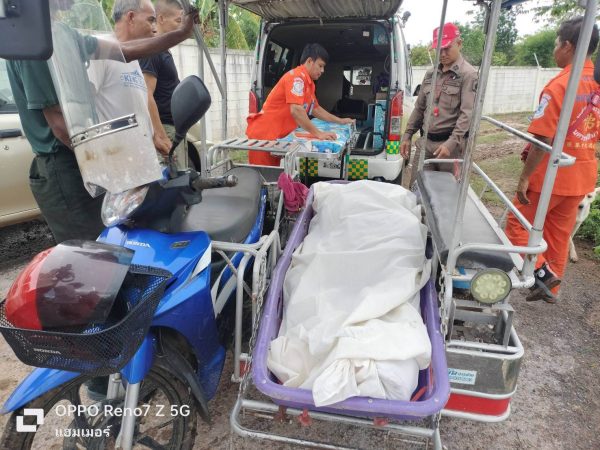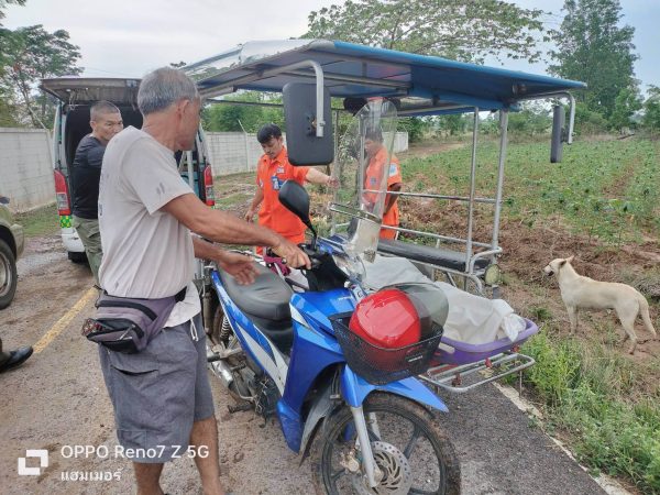 เจ้าหน้าที่หน่วยกู้ภัย จึงได้นำร่างขึ้นรถจักรยานยนต์พ่วงข้าง ขี่ลัดทุ่งเพื่อนำไปส่งให้รถตู้นำส่งต่อไปที่โรงพยาบาลปักธงชัย เพื่อชันสูตรศพและส่งให้ญาติไปบำเพ็ญกุศลตามประเพณีต่อไป.