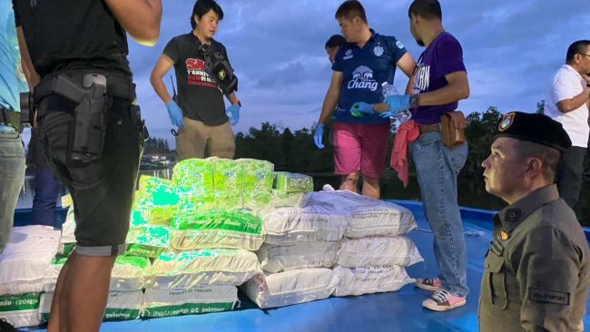 ตำรวจ ปส.ร่วม ตร.เมืองคอน บุกจับยาไอซ์บิ๊กลอต 1,500 กก. ขณะลำเลียงลงเรือไปยังประเทศที่ 3 แฉยึดโครงการก่อสร้างมหาวิทยาลัยดัง โดยใช้รถบรรทุกปะปนมากับวัสดุก่อสร้าง หวังตบตาเจ้าหน้าที่-คาดเคยลำเลียงขนส่งสำเร็จมาแล้วหลายครั้ง