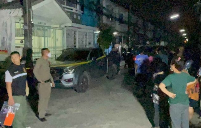 ที่เกิดเหตุพบศพ นายหนุ่ม (สงวนนามสกุล) อายุ 45 ปี มีบาดแผลถูกยิง 1 นัด ที่พื้นปลายเท้าผู้ตายพบอาวุธปืนตกอยู่ 1 กระบอก และปลอกกระสุน 1 ปลอก ที่หน้าบ้านพบรถกระบะ โตโยต้า รีโว่ สีบรอนซ์เทา กระจกมองข้างขวามีรอยถูกยิงกระจกแตก บริเวณหน้ารถพบรถจยย.ยามาฮ่า สีแดง ของผู้ตายจอดอยู่