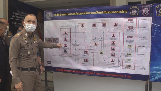 พล.ต.ท.สมประสงค์ เย็นท้วม ผู้บัญชาการตำรวจภูธรภาค 3 เปิดเผยว่า กลุ่มบุคคลดังกล่าว ได้ร่วมกันกระทำความผิดเป็นขบวนการ โดยแบ่งหน้าที่กันทำในแต่ละขั้นตอน เริ่มจากขั้นตอนการติดต่อกับนายหน้าชาวลาวเพื่อจัดหาชาวจีนที่ต้องการลักลอบข้ามชายแดนเข้ามาในไทยตามช่องทางธรรมชาติ โดยเฉพาะพื้นที่ตะเข็บชายแดนไทย – สปป.ลาว , จัดหารถยนต์เพื่อลักลอบนำคนจีนไปส่งยังพื้นที่ทางตอนเหนือของไทยโดยเฉพาะ อ.แม่สอด จ.ตาก และลักลอบข้ามชายแดนไทยออกไปยังประเทศเพื่อนบ้านต่อไป โดยการเดินทางแต่ละครั้งจะมีการใช้รถยนต์อย่างน้อย 2-3 คัน ทำหน้าที่เป็นรถยนต์ส่วนล่วงหน้า รถยนต์ขนคนจีน และคันปิดท้าย เพื่อส่งความเคลื่อนไหวของเจ้าหน้าที่ให้ทุกคันทราบตลอดระยะเวลาการเดินทางไปส่งคนจีนยังจุดหมายปลายทาง ซึ่งผู้ร่วมกระทำความผิดดังกล่าว ส่วนใหญ่เป็นกลุ่มเครือญาติ และคนในหมู่บ้านเดียวกัน