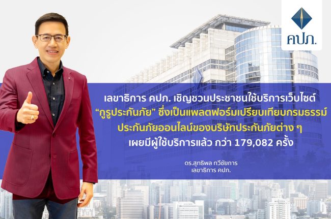 ดร. สุทธิพล ทวีชัยการ เลขาธิการคณะกรรมการกำกับและส่งเสริมการประกอบธุรกิจประกันภัย (เลขาธิการ คปภ.) เปิดเผยว่า สำนักงาน คปภ. ได้มีการปรับตัวให้เข้าสู่ยุค Next Normal อย่างต่อเนื่องด้วยการนำเทคโนโลยีมาใช้ในการดำเนินการทั้งด้านการกำกับและส่งเสริมภาคธุรกิจประกันภัย การคุ้มครองสิทธิประโยชน์ด้านการประกันภัยให้มีความสะดวก รวดเร็ว และง่ายต่อการเข้าถึงข้อมูลผ่านทางเว็บไซต์และการใช้เครือข่ายสังคมออนไลน์ในรูปแบบต่าง ๆ โดยเฉพาะการเข้าถึงข้อมูลการเปรียบเทียบผลิตภัณฑ์ประกันภัยต่าง ๆ เพื่อให้ประชาชนมีทางเลือกและเข้าถึงผลิตภัณฑ์ประกันภัยให้มีความเหมาะสมกับตนเองและครอบครัวอย่างมีประสิทธิภาพยิ่งขึ้น ดังนั้นสำนักงาน คปภ. จึงได้พัฒนาและต่อยอดเว็บไซต์เพื่อเปรียบเทียบผลิตภัณฑ์ประกันภัยภายใต้ชื่อ “กูรูประกันภัย” (https://guruprakanphai.oic.or.th) เพื่อรองรับสังคมไทยที่ก้าวเข้าสู่ยุคเศรษฐกิจดิจิทัล